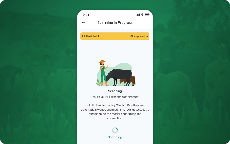 Before performing any activity, you can scan an animal’s EID tag to instantly pull up its record. This ensures you’re always working with the correct animal and the most up-to-date information. Whether you’re logging health treatments, movements, or other activities, scanning first helps maintain accuracy and keeps records consistent in real time.