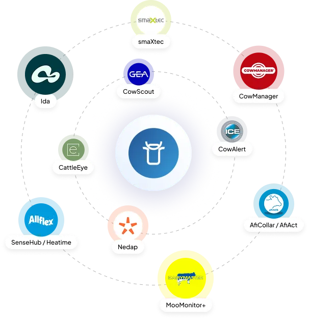 Whether it’s collars, ear tags, or pedometers, connect the systems you use on your dairy today and make their data part of everyday workflows.